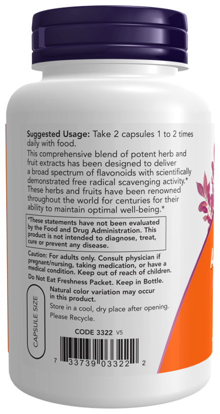 Данная комплексная смесь из мощных экстрактов трав и фруктов была разработана для обеспечения широкого спектра флавоноидов с научно доказанной способностью нейтрализовать свободные радикалы. Эти травы и фрукты на протяжении веков славились во всём мире своей способностью поддерживать оптимальное самочувствие.