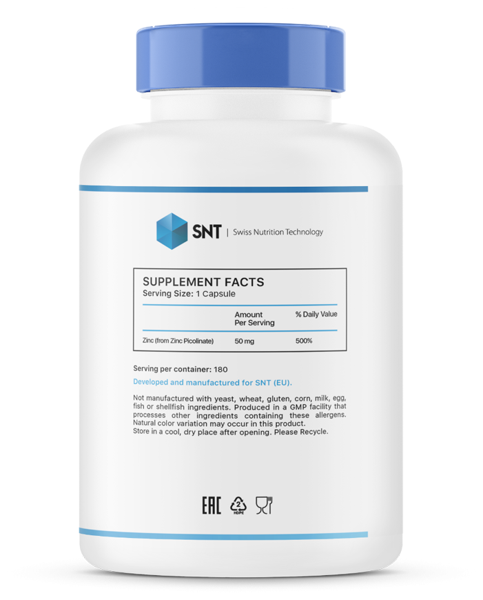 SNT Zinc Picolinate 50 мг, Пиколинат цинка 50 мг, 180 капсул