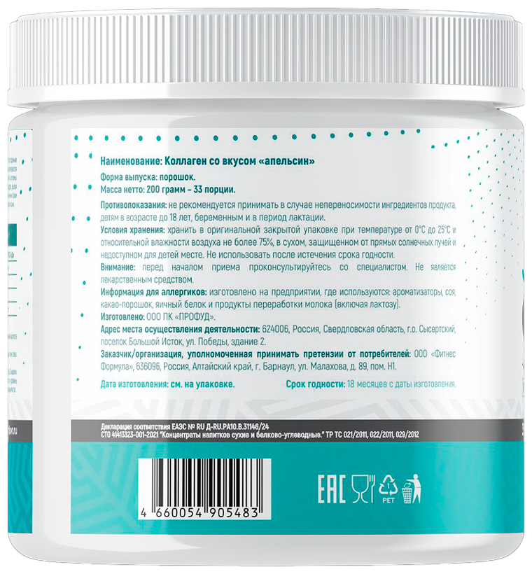 | гидролизат коллагенового бека(говяжий I типа), аскорбиновая кислота (Е300), лимонная кислота (Е330), ароматизаторы пищевые, подсластитель сукралоза. | ||