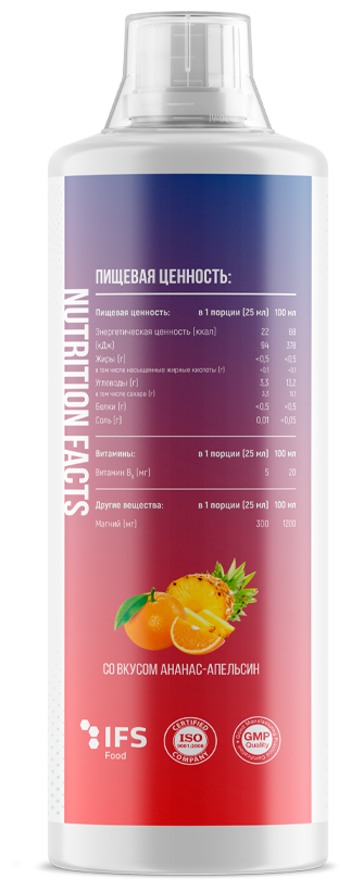вода, фруктоза, тримагний дицитрат, кислота (молочная кислота), гидрохлорид пиридоксина, консерванты (бензоат натрия, сорбат калия), подсластители (цикламат натрия, сахарин натрия), ароматизаторы.