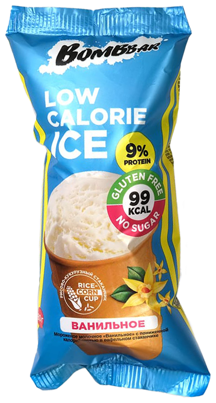 Bombbar Мороженое низкокалорийное в вафельном стаканчике, 80 грамм