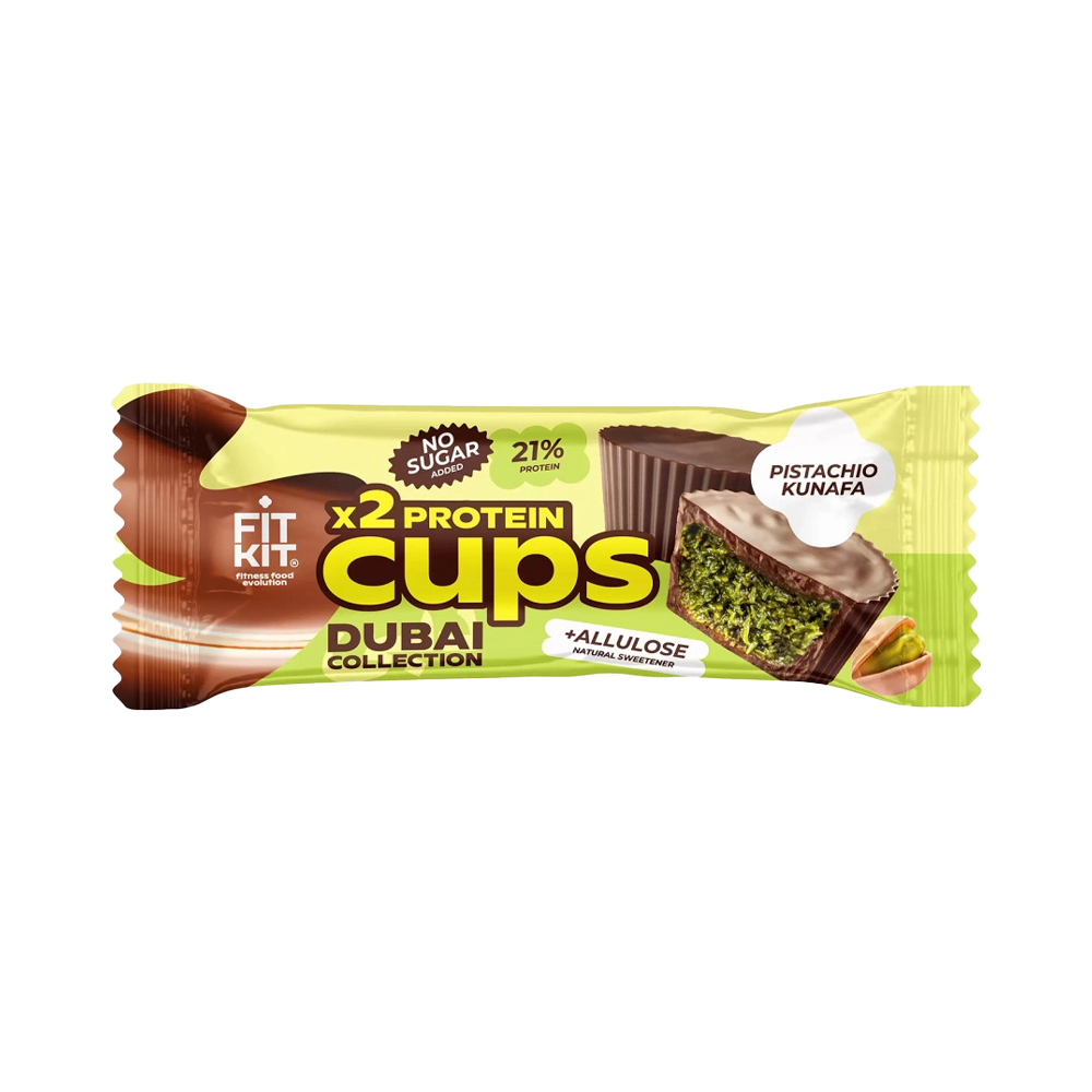 Протеиновое пирожное Fit Kit Protein Cups – это вкусное и полезное лакомство, которое прекрасно впишется в рацион. Пирожное сочетает в себе нежный вкус фисташковой кунафы и насыщенный шоколад, что делает его идеальным десертом для тех, кто ценит здоровье и вкус. Оно создано с учетом потребностей активных людей, которые заботятся о своем питании, но не хотят отказываться от удовольствия.