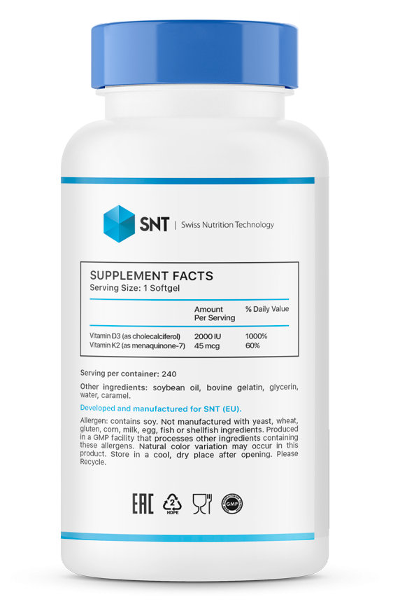 SNT Vitamin D3+K2, Витамин Д3+К2, 240 капсул