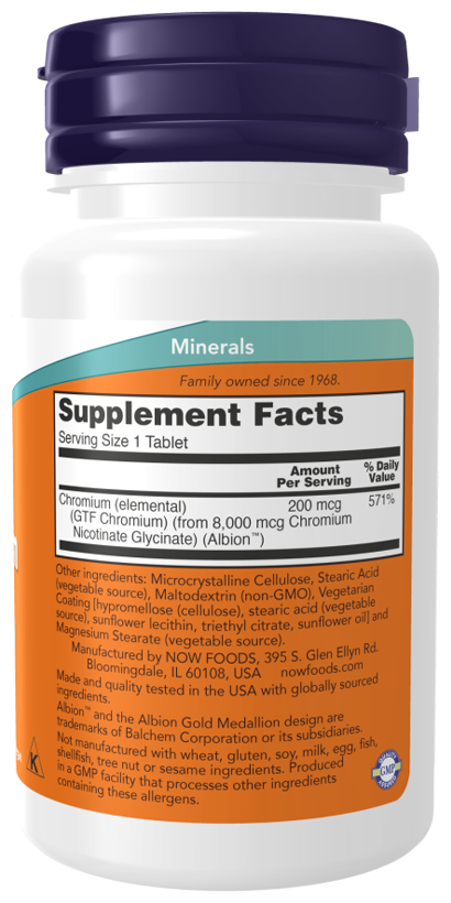 NOW GTF Chromium Chelate 200 mcg, 100 таблеток